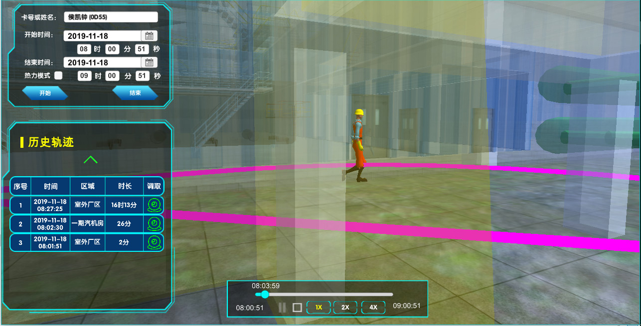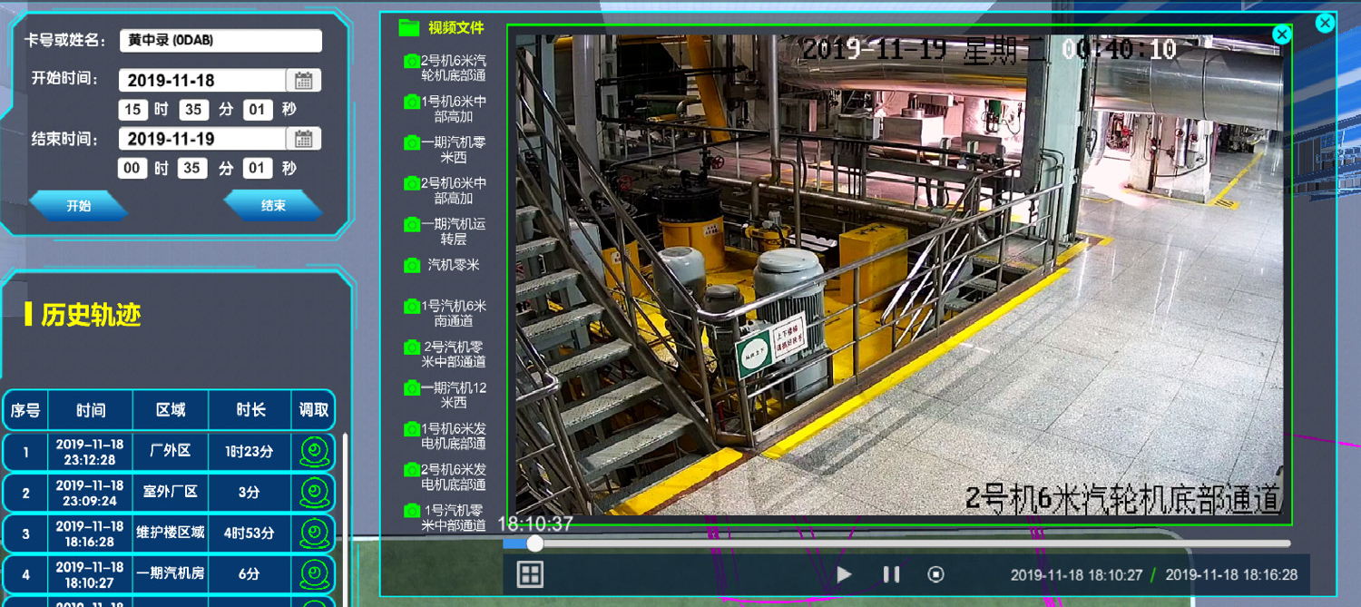 系統(tǒng)支持接入電廠視頻監(jiān)控系統(tǒng),在三維電子地圖上顯示視頻監(jiān)控位置,任意切換調(diào)取視頻監(jiān)控。可實(shí)現(xiàn)快速查找、單點(diǎn)回放、圖像識別等功能。同時(shí)可基于人員當(dāng)前位置自動調(diào)取對應(yīng)的視頻監(jiān)控,對人員行走到其他位置自動切換到相應(yīng)監(jiān)控畫面。對于發(fā)生異常的情況,可基于人員歷史軌跡不同位置及不同時(shí)段調(diào)取相應(yīng)位置相應(yīng)時(shí)間段的歷史視頻監(jiān)控,與歷史軌跡聯(lián)動播放,方便事故分析及責(zé)任劃定。