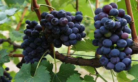 吃完午飯,小伙伴們來到了葡萄園,葡萄藤彎彎曲曲地盤在竹架上,一串串紫紅色的葡萄在綠葉中若隱若現(xiàn),伙伴們穿梭在葡萄藤中采摘心儀的葡萄。親手采摘的葡萄,格外的甜。